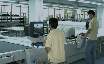 公司采用CAD計(jì)算機(jī)輔助排料系統(tǒng)進(jìn)行排料,該系統(tǒng)準(zhǔn)確、高效。鋪料機(jī)代替手工鋪料的優(yōu)點(diǎn)使鋪料均勻、整齊、松緊適宜、降低工人勞動(dòng)強(qiáng)度。
