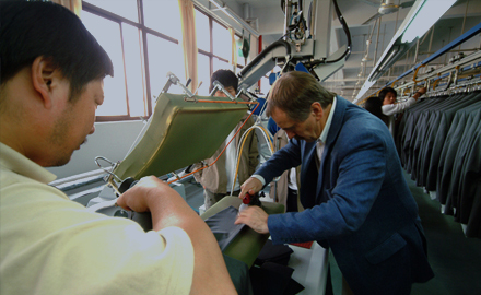 運(yùn)用高品質(zhì)的德國(guó)BRISAY立模整燙機(jī),采用電腦控制蒸汽輸出量、溫度、壓力、定型、抽濕時(shí)間,根據(jù)面料的厚薄、質(zhì)地、性能,以38種不同整燙程序調(diào)整以上各個(gè)參數(shù),配合服裝的整燙。